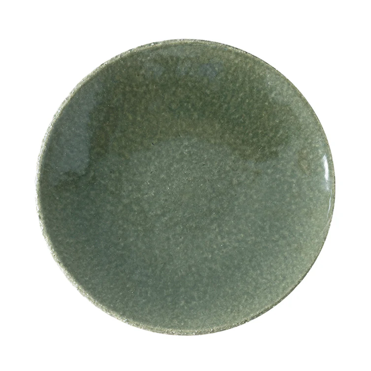 Assiette plate en céramique. Terre chamottée, grès dans lequel sont ajoutés de petits morceaux de grès cuits concassés.