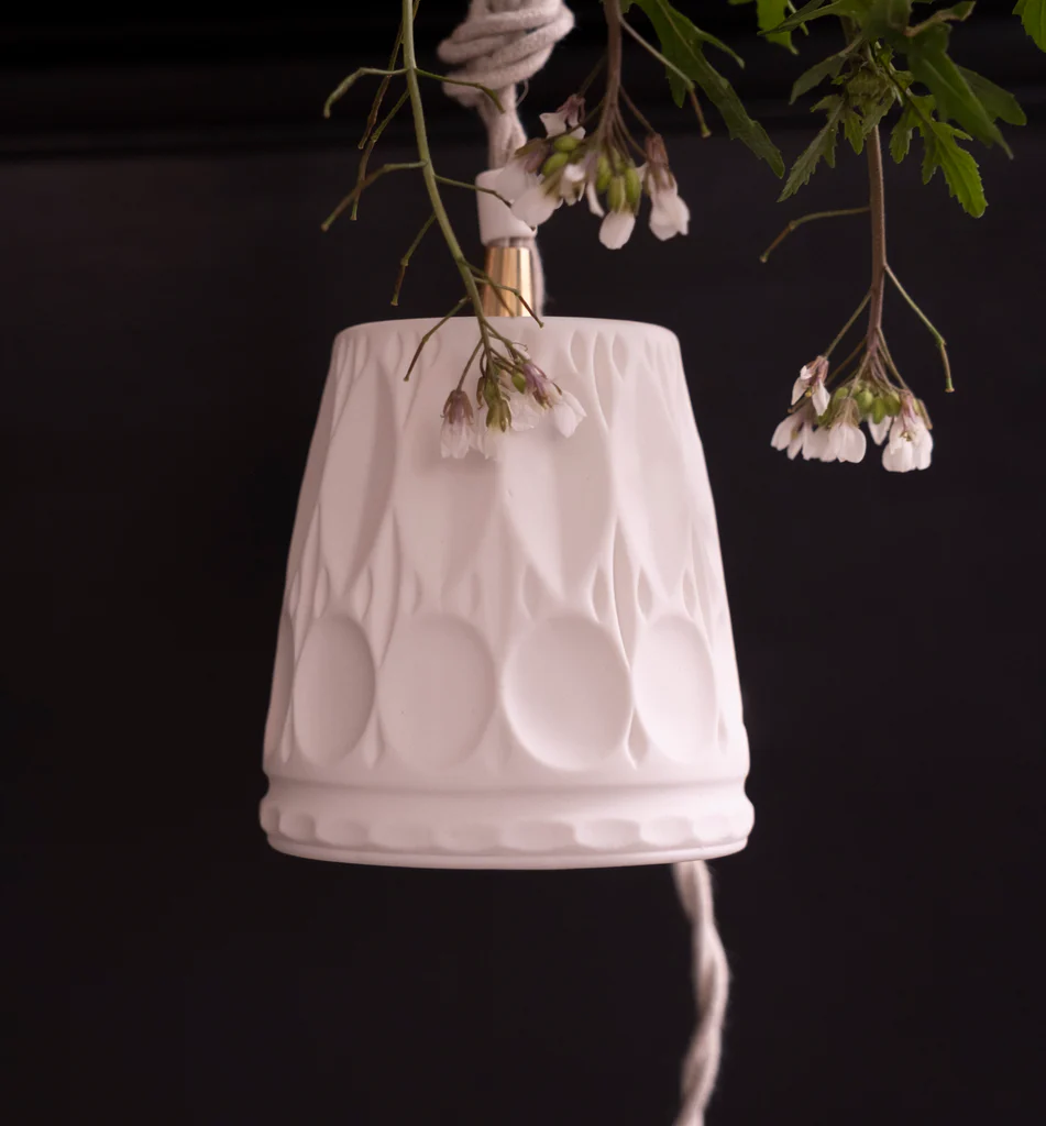 Une fois la lampe allumée, la porcelaine révèle sa translucidité et diffuse une chaleureuse lumière.