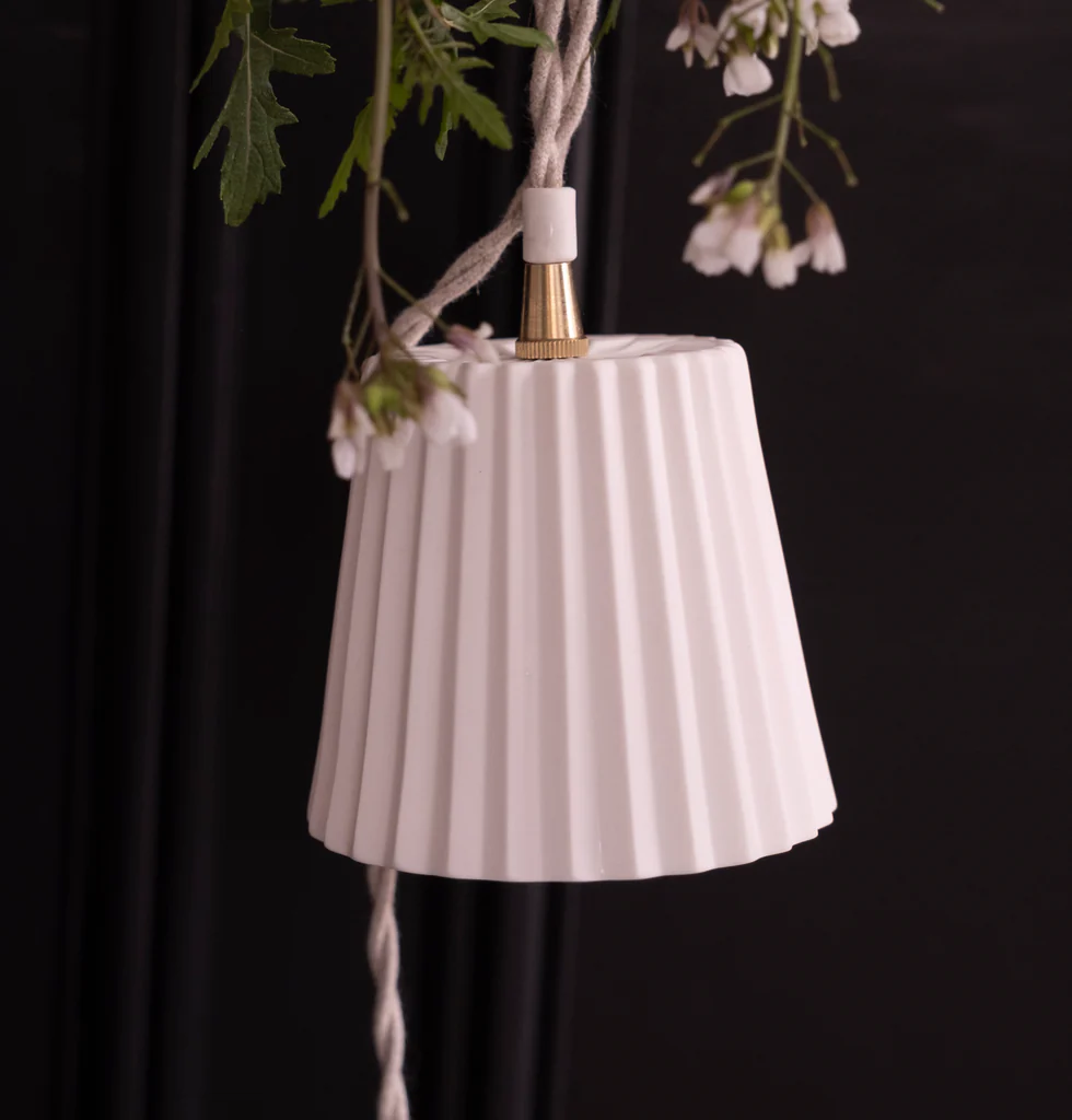 Une fois la lampe allumée, la porcelaine révèle sa translucidité et diffuse une chaleureuse lumière.