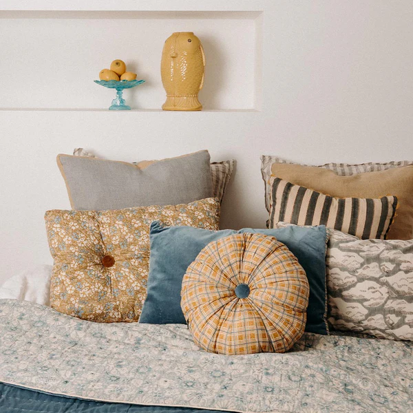 46,00€sprit Liberty ou rayures signature ? Bordé d’un ruban ondulé, le coussin Astre va insuffler un charme printanier à…