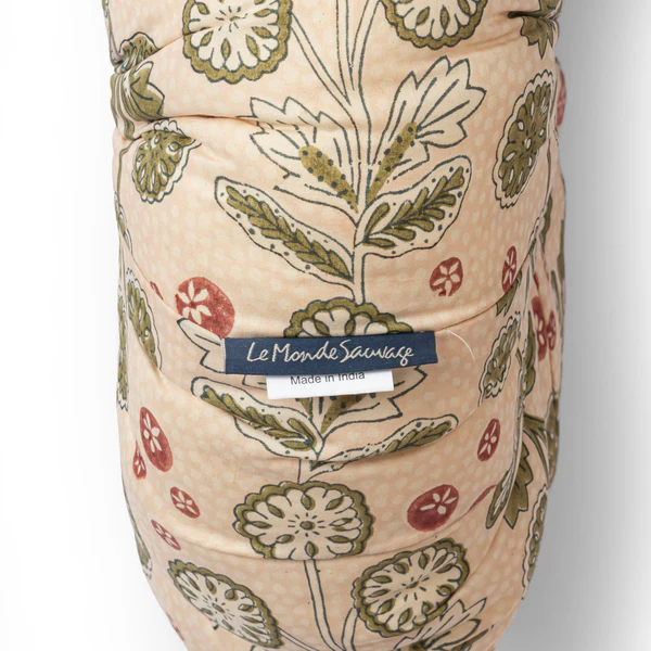 Imprimé suivant la technique du block print, il met à l’honneur nos motifs signature. De fabrication 100 % artisanale, chaque pièce est unique et peut présenter certaines irrégularités.