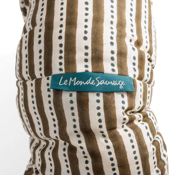 Imprimé suivant la technique du block print, il met à l’honneur nos motifs signature. De fabrication 100 % artisanale, chaque pièce est unique et peut présenter certaines irrégularités.