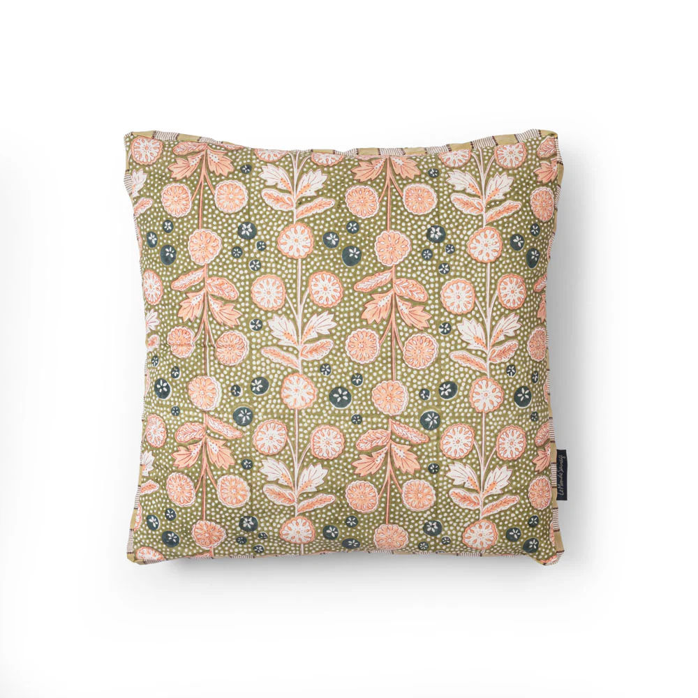 Fabrication artisanale au block print. Déhoussable avec zip de fermeture. livré avec son intérieur en plumes