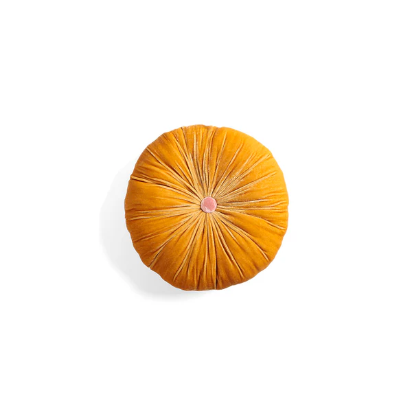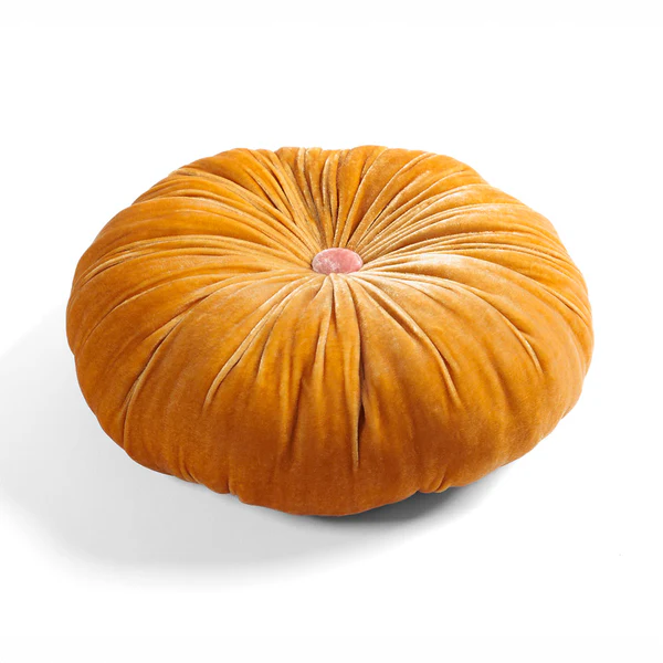 Rococo à souhait, ce coussin prône la fantaisie du mélange de matières. On n’hésite pas à l’entourer de lin et de soie. Le plissé du velours de soie et la finition bouton lui confèrent chic et raffinement.