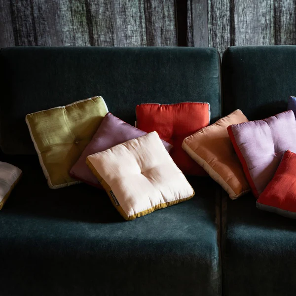 Ajouter à la WishlistToffee, le petit coussin doudou, comme une gourmandise, un objet précieux à cajoler. Confectionné en soie avec un jeu de couleurs contrasté grâce à la bande sur le côté, il est capitonné en son centre à l’aide d’un joli point de broderie main à l’effet matelassé.