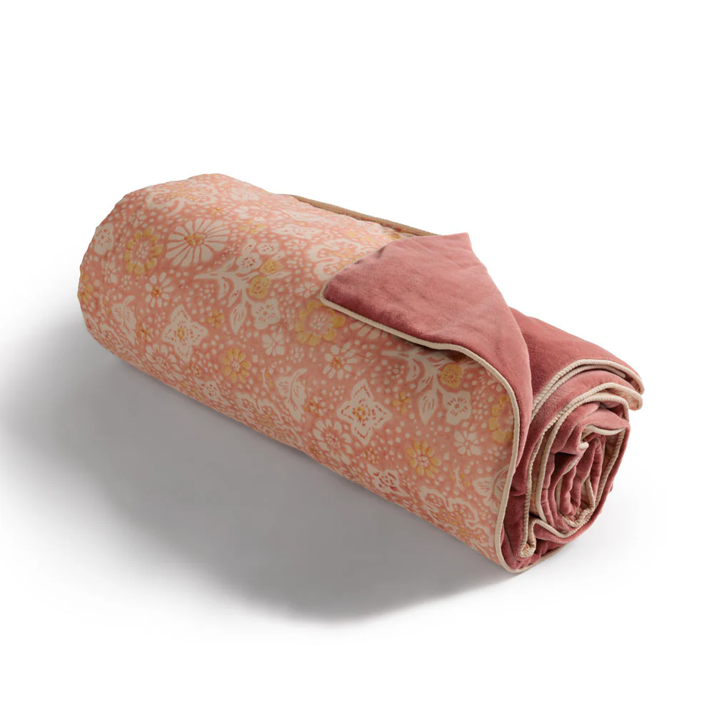 Édredon imprimé suivant la technique du block print. De fabrication 100 % artisanale, chaque pièce est unique et peut présenter certaines irrégularités.