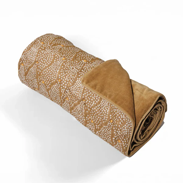Édredon imprimé suivant la technique du block print. De fabrication 100 % artisanale, chaque pièce est unique et peut présenter certaines irrégularités.