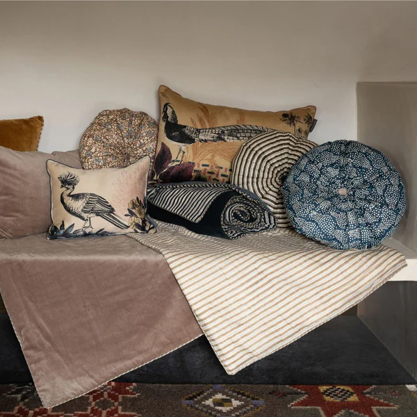 Édredon imprimé suivant la technique du block print. De fabrication 100 % artisanale, chaque pièce est unique et peut présenter certaines irrégularités.