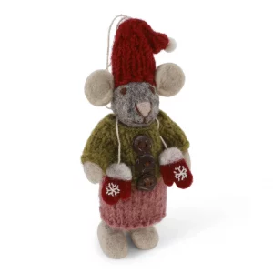 18,00€Petite souris grise avec ses mitaines vert à suspendre en laine feutrée 12cm de hauteur