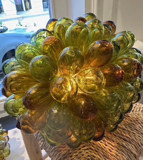 Conçues à Damas par nos maîtres verriers, chaque goutte est soufflée à la bouche à partir de verre recyclé, puis patiemment tissée à la main sur une structure. Fabriquées avec précision et passion, elles perpétuent le soufflage du verre syrien, un savoir-faire ancestral inscrit au patrimoine mondial immatériel de l’UNESCO.