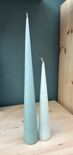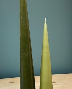 22,00€Lot de 2 bougies cônes en véritable cire de paraffine. la grande, coloris « artichoke », mesure 37cm et a une durée…