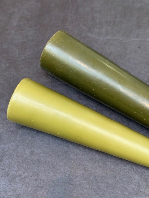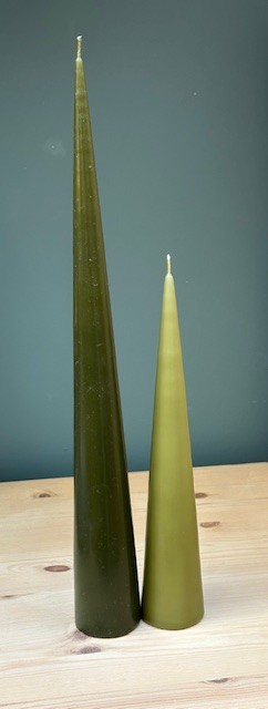 22,00€Lot de 2 bougies cônes en véritable cire de paraffine. la grande, coloris « artichoke », mesure 37cm et a une durée…