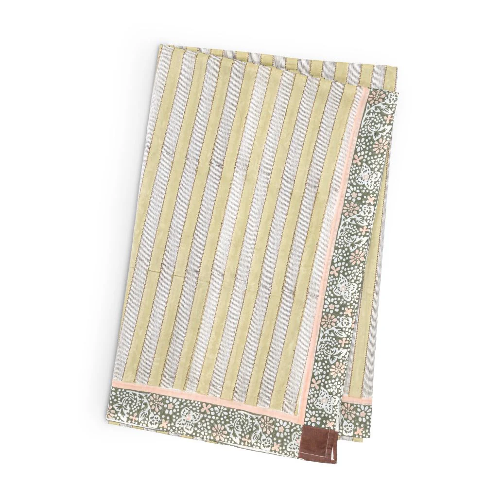 Imprimée selon la technique traditionnelle au bloc de bois, cette pièce artisanale en voile de coton aérien apporte une sensation de légèreté et de douceur.