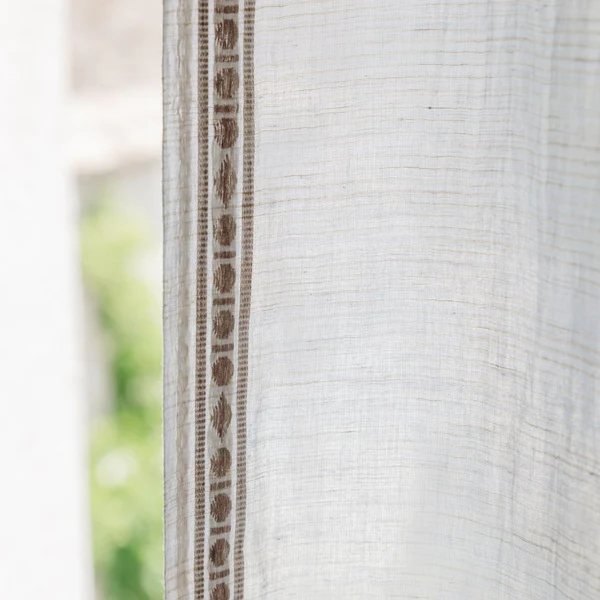Ajouter à la WishlistLéger comme l’air, le panneau Zéphyr ouvre la fenêtre vers l’extérieur. Réalisé en voile coton teint, sa bande signature brodée au coloris légèrement contrasté marque les bords. Le fil de coton est teint par endroit selon le procédé de l’ikat, ce qui crée un motif rayé ton sur ton à l’horizontale