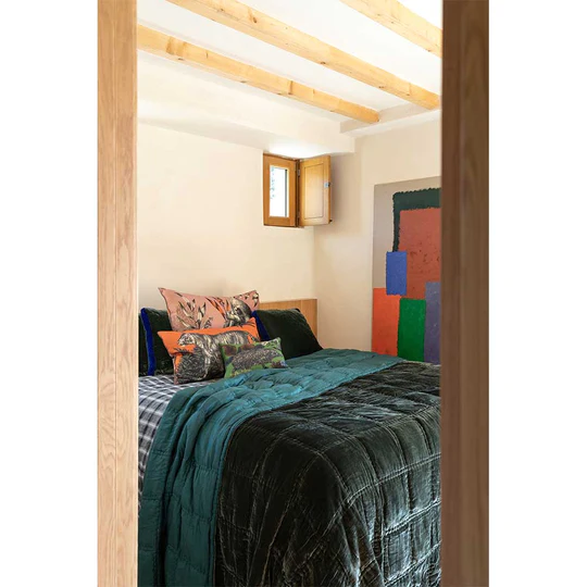 Ajouter à la WishlistEnveloppant, le quilt Goa by night trouvera immédiatement sa place dans votre chambre pour sublimer votre lit. Cette couverture est faite d’un velours souple, fluide et sensuel issu de l’habillement, que nous avons sélectionné au début des années 2000. Composé de soie, il révèle ses nuances de manière unique et se libérant de la pesanteur du velours traditionnel.