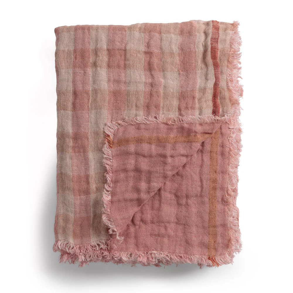 Plaid en lin bicolore gaufré- le monde sauvage -coloris Nude – 150/200cm