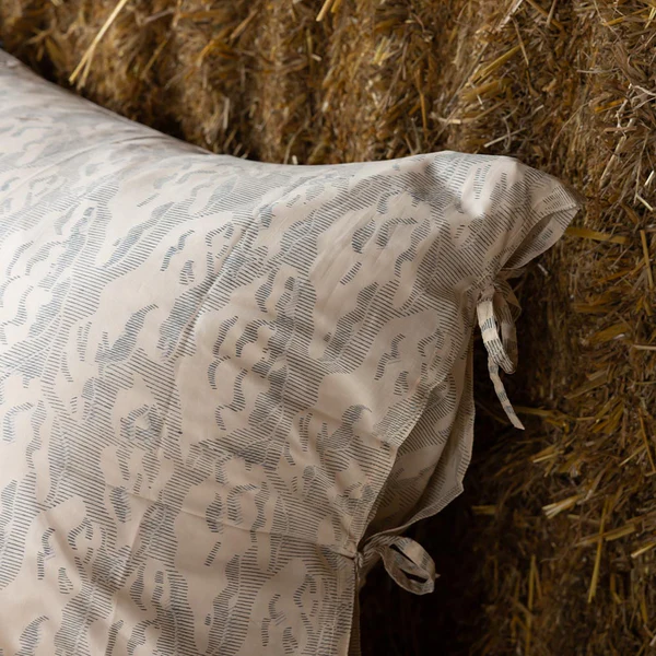 Set comprenant la housse de couette et une taie carrée (lit une place) ou deux (lit deux places). Rabat et fermeture à liens.